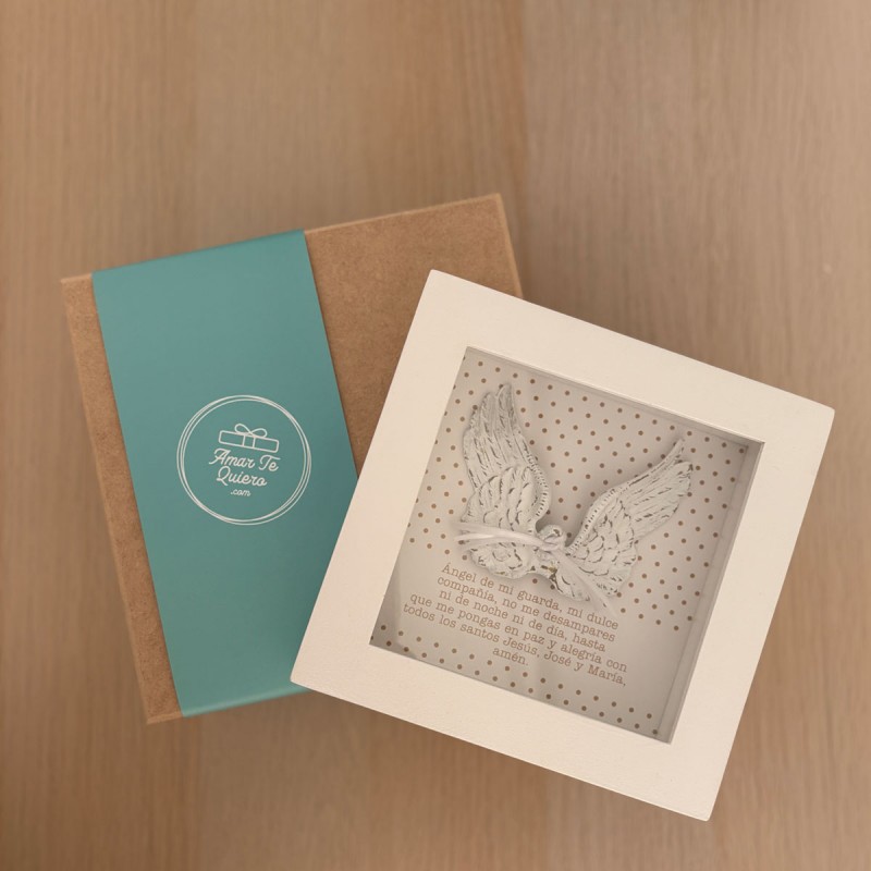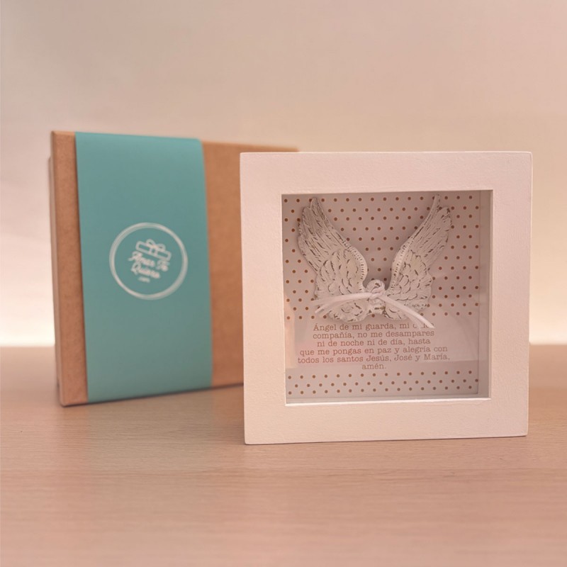 Cuando llega un bebé, queremos darle a la familia los mejores deseos! Tal vez por esto, este cuadro es uno de nuestros regalos más vendidos para bebé; ya sea para baby shower, bautizo, obsequio para un bebé recién nacido, de nacimiento o lo que se te ocurra. Un regalo de protección, con la oración del angel de la guarda y unas lindas alas que lo representan. Envíale protección y amor con este lindo detalle.