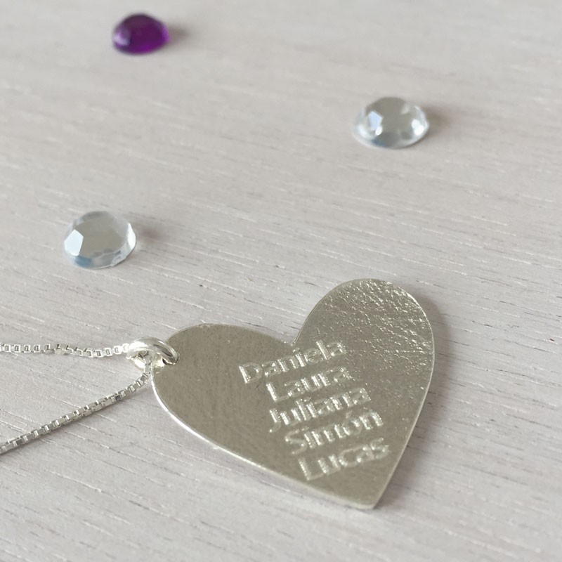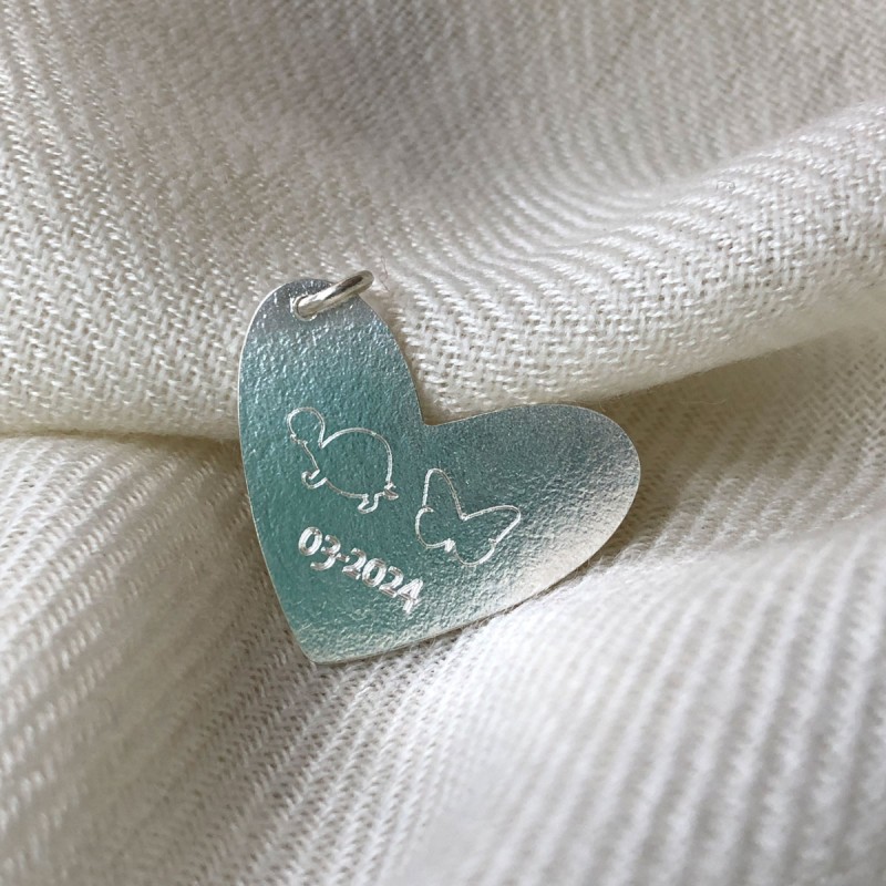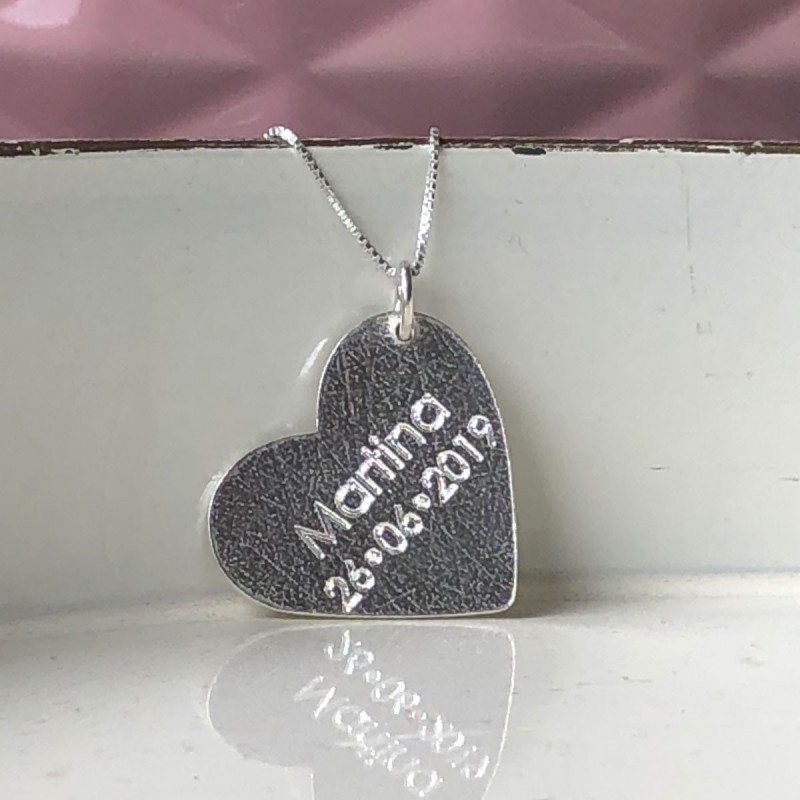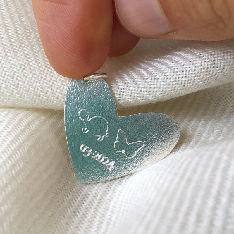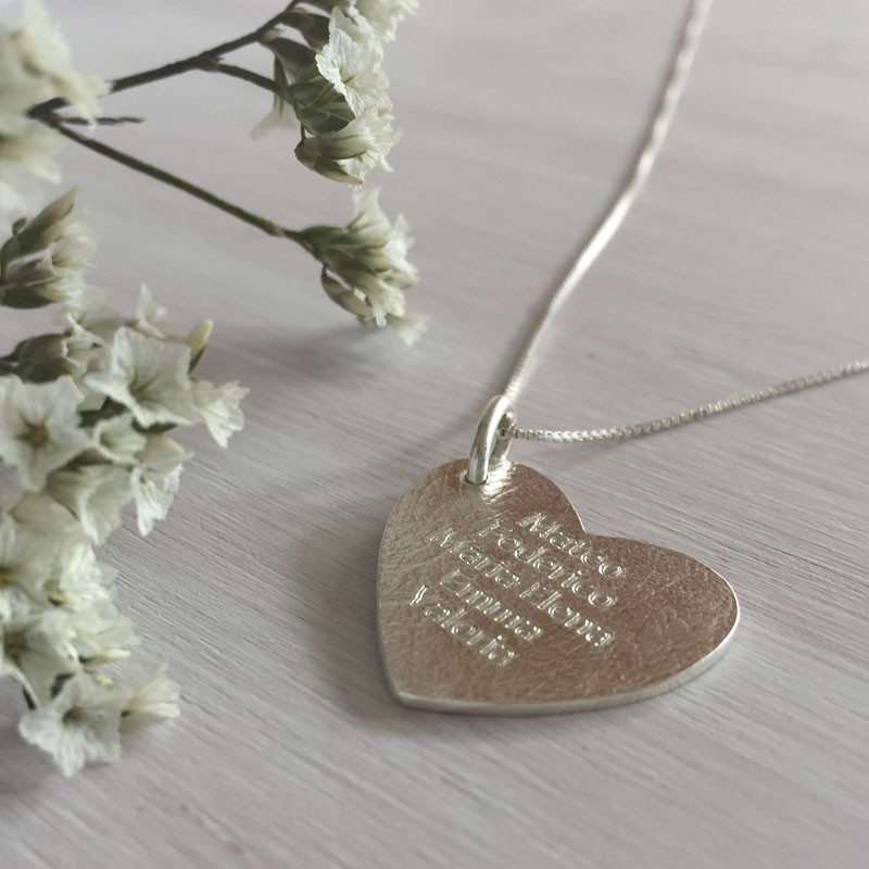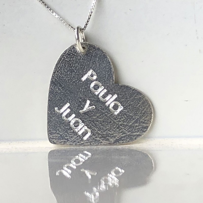 Dije Corazon en Plata Personalizable con Nombres o fechas
