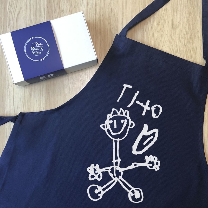 Si tu pequeñín aún no escribe, puedes combinar su dibujo y escribir alguna frase corta con tu letra. No te preocupes si queda desordenado, nosotros nos encargamos de ordenarlo para estamparlo. El delantal debes agregarlo al carrito y una vez finalices la compra, debes enviarnos un mail a info@amartequiero.com con el dibujo o frase de tu pequeñin. OJO: no puede ser cualquier dibujo, debe ser pintado con marcador grueso a un solo color. Para ver con más detalle, revisa nuestro video explicativo.