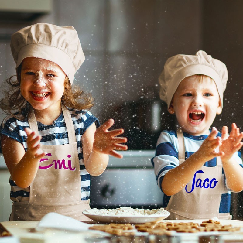 Cocinar puede crear los mejores recuerdos en la niñez. Seguro aún puedes oler con tu imaginación ese ponqué de la abuela o recordar cómo sabía esa torta que preparabas con mamá. Por eso, traemos estos delantales personalizados con el nombre de los niños, para que los pequeños cheffs de la cocina puedan seguir creando los lindos recuerdos alrededor de huevos y harina. Regalos, obsequios y detalles súper especiales para nuestros niños, los más especiales de la cocina.
