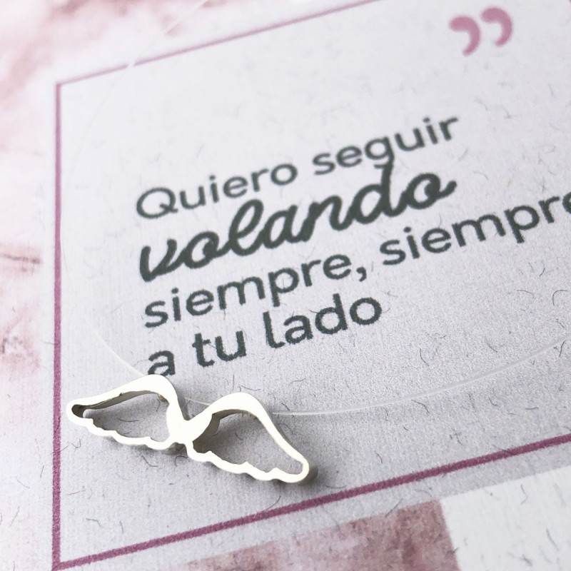 Las alas tienen significados mágicos; se pueden asociar con ángeles en el cielo pero también existen ángeles en la tierra que aparecen de repente y cambian nuestras vidas. Estas a alas son el regalo perfecto ya sea como protección para aquel que tanto queremos o para darle un lindo mensaje que siempre pueda llevar consigo a todas partes y que solo tú y ella sepan el verdadero significado.