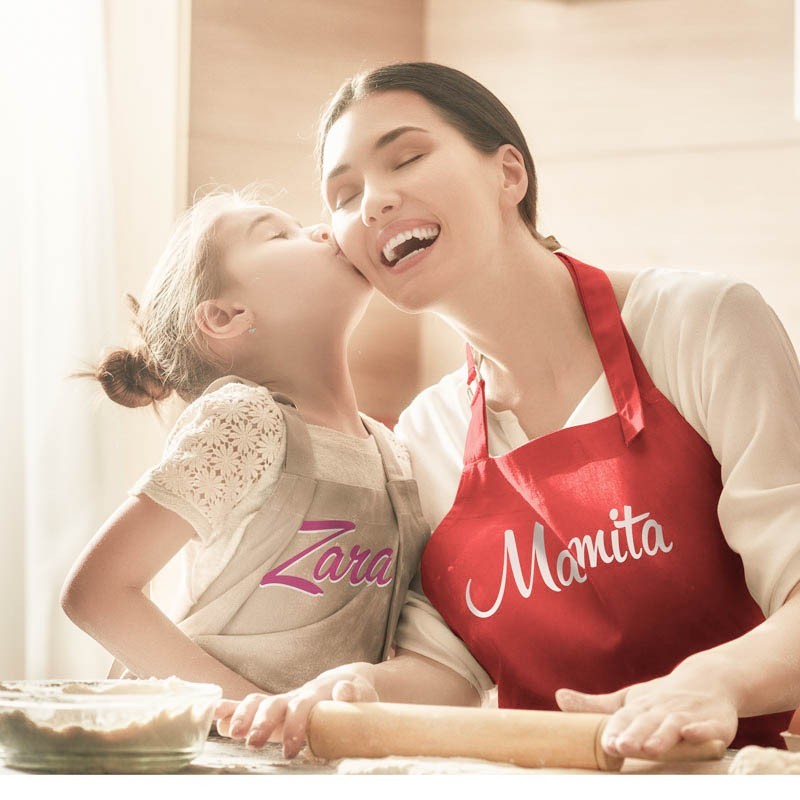Recuerda escribir el nombre de la personalización en el campo NOMBRE. En el nombre del delantal para adulto puedes poner Mamá, Mamita, Mamoka o como sea que le dicen a esta linda mamá! y en el de niños puedes poner el nombre o el apodo! Recuerda que no pueden ser más de 2 palabras!
